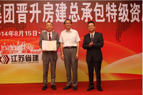 8月15下午,江蘇省建集團(tuán)晉升房建總承包特級(jí)資質(zhì)慶祝大會(huì)在南京湯山御豪溫泉酒店隆重舉行。江蘇省住建廳副廳長(zhǎng)、省建管局局長(zhǎng)徐學(xué)軍,省住建廳副巡視員紀(jì)迅,省住建廳有關(guān)處室負(fù)責(zé)人賀志良、曹達(dá)雙、王懷、李波、李震,有關(guān)金融機(jī)構(gòu)負(fù)責(zé)人,部分公司老領(lǐng)導(dǎo),集團(tuán)合作伙伴代表,以及集團(tuán)機(jī)關(guān)中層及以上干部、各基層單位有關(guān)負(fù)責(zé)人150人出席大會(huì)。集團(tuán)公司總裁仇天青主持會(huì)議。